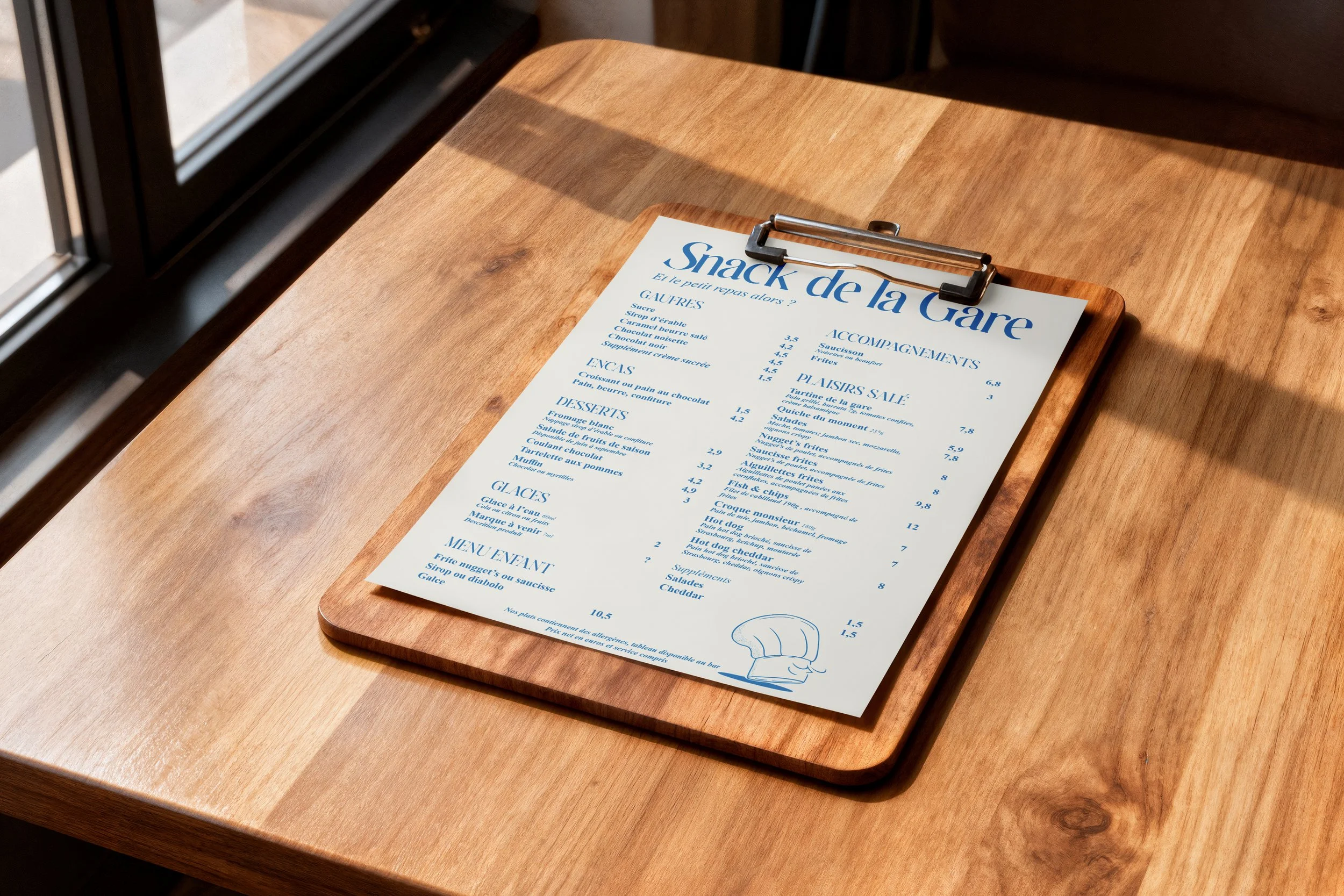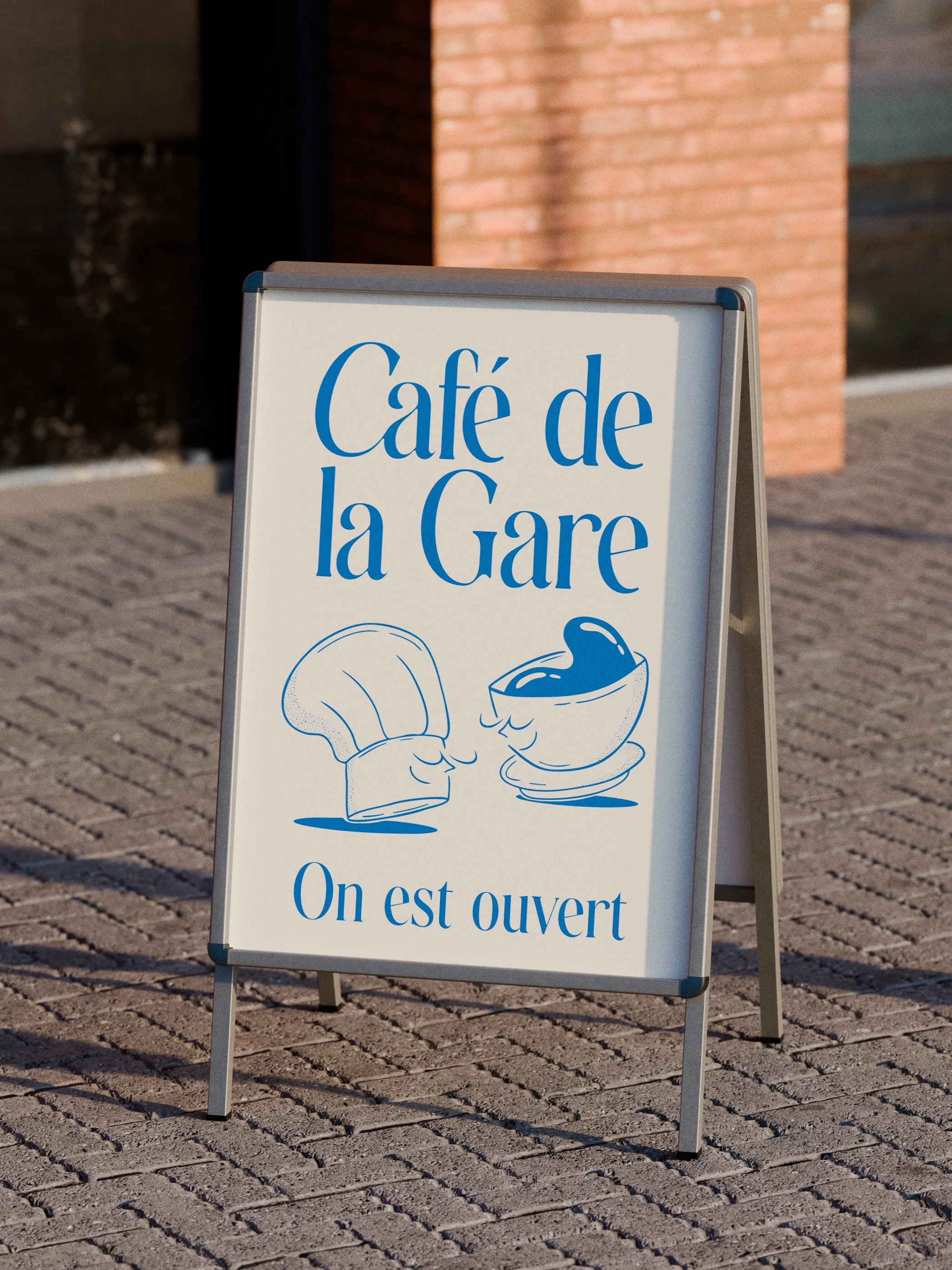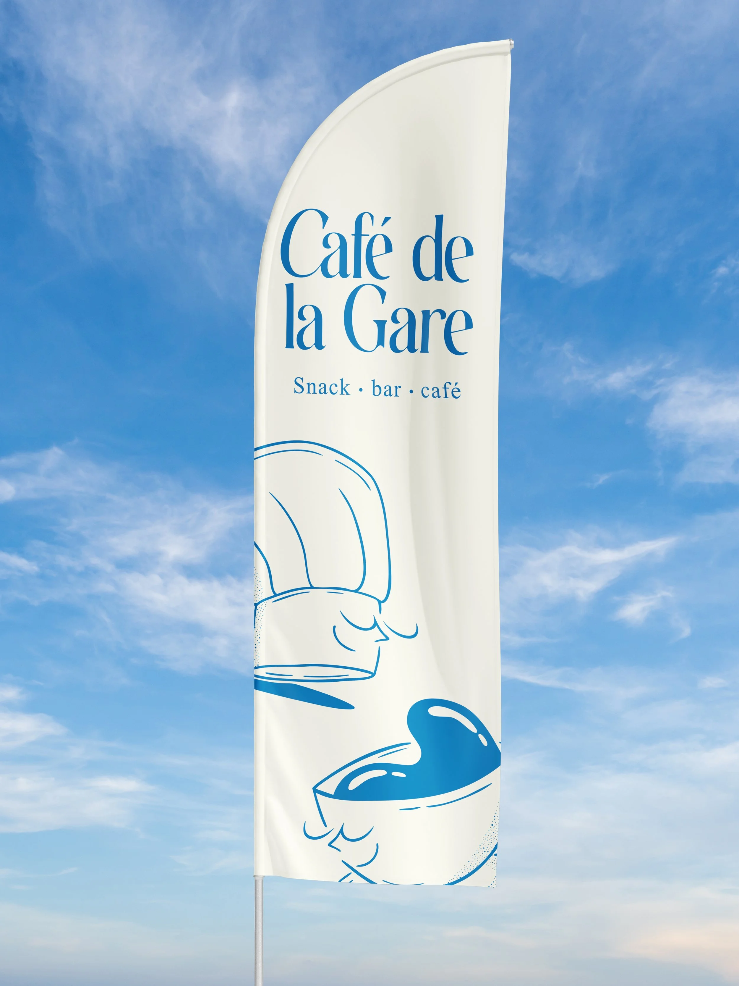 Projet réalisé pour un café situé à La Barre de Monts, face au port. Après deux ans d’activité, l’établissement souhaitait remodeler son identité afin de redynamiser son image et de gagner en professionnalisme.